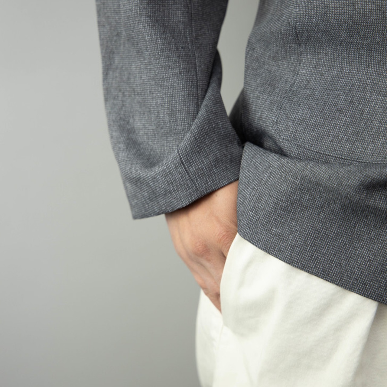 ●夏らしさのあるリネン素材の様な生地を使用したジャケット。