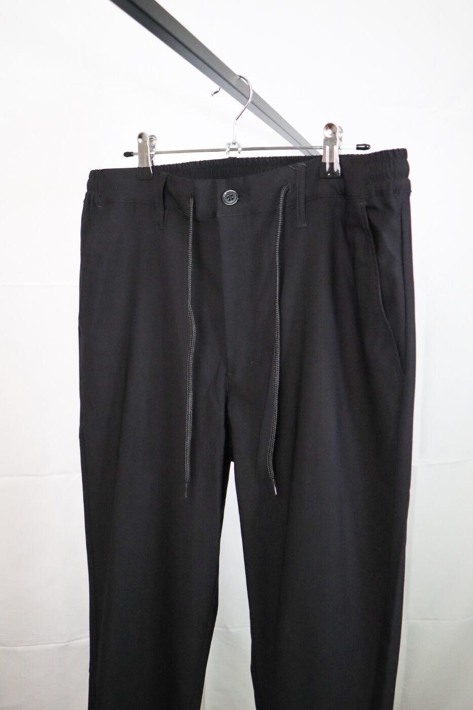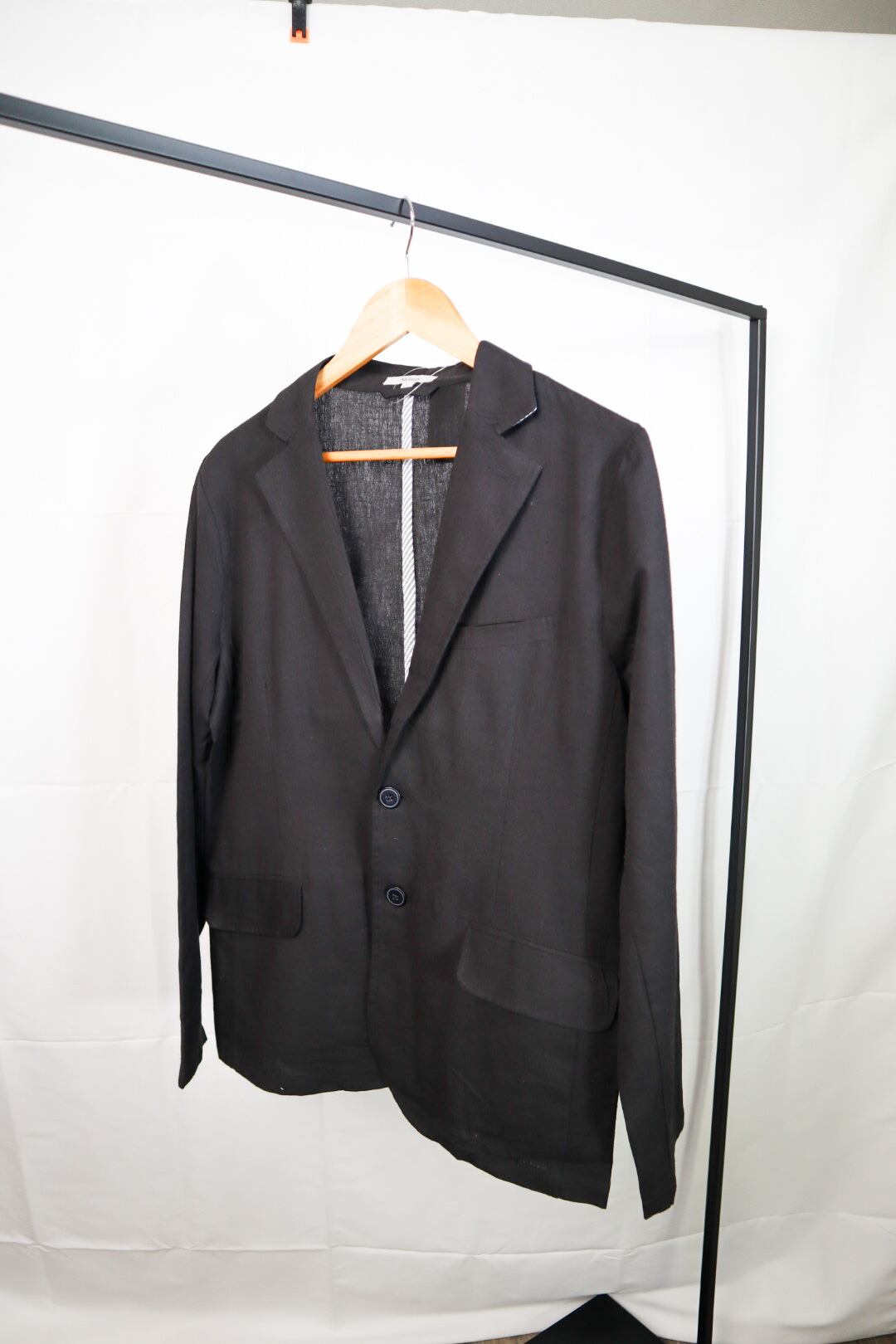 ジャケットとパンツを黒でまとめ、Iライン効果でスタイルアップを目指します。